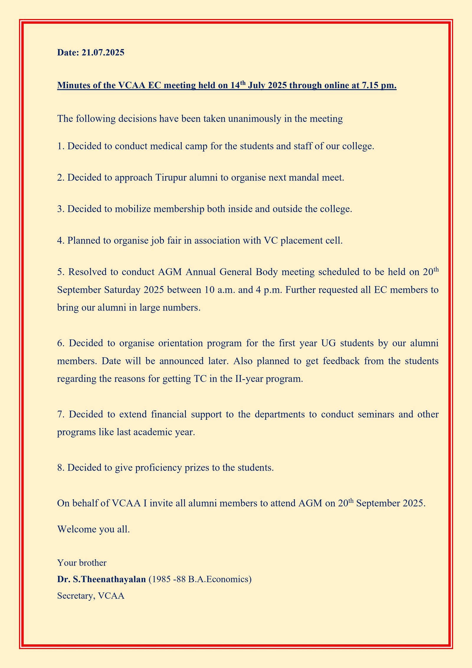 registered with Byelaws in the year 2008 under the Tamil Nadu Societies